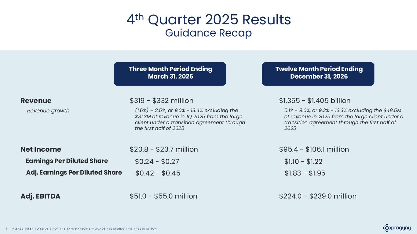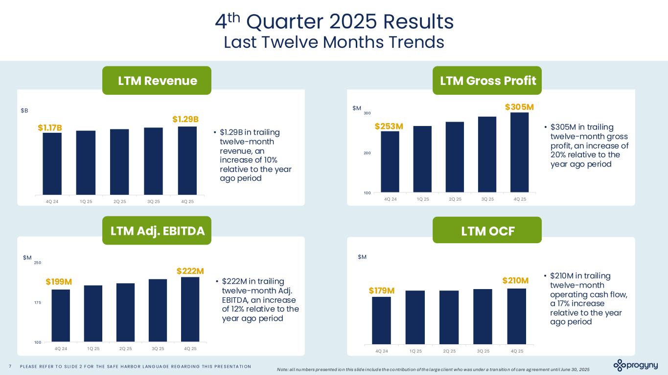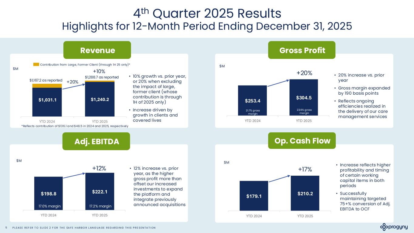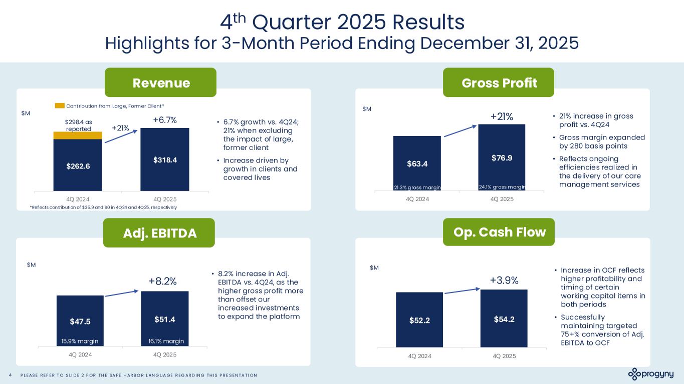 NEW YORK, February 26, 2026 /GlobeNewswire/ - Progyny, Inc. (Nasdaq: PGNY) (“Progyny” or the “Company”), a global leader in women's health and family building solutions, today announced its financial results for the three- and twelve-month periods ended December 31, 2025 (“the fourth quarter of 2025” and "the full year", respectively), as compared to the three- and twelve-month periods ended December 31, 2024 (“the fourth quarter of 2024” and “the prior year period”, respectively).