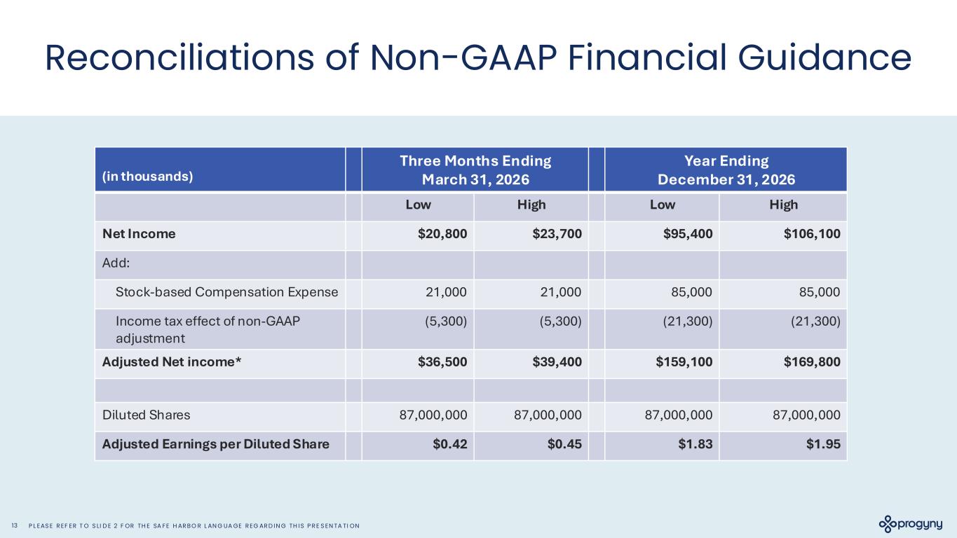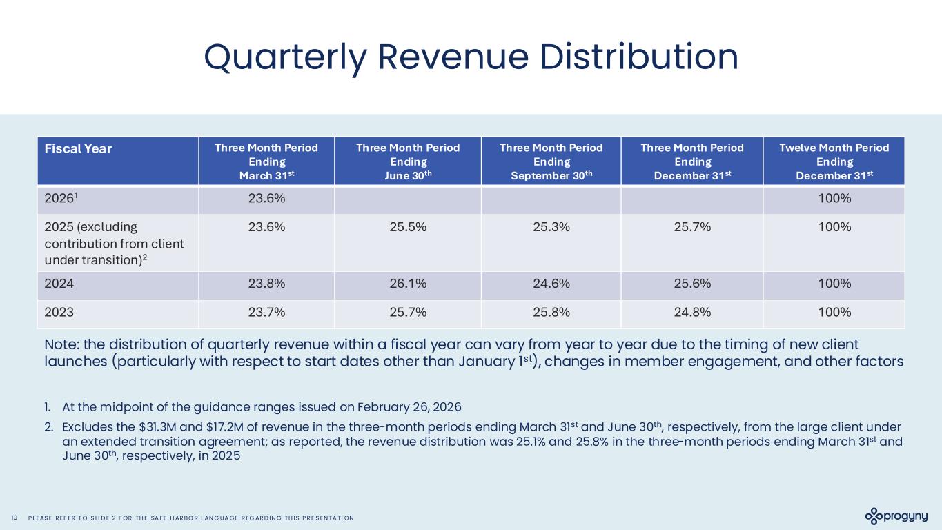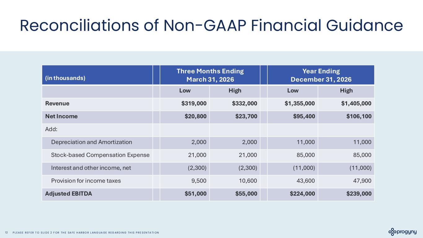 1. Includes impact of $7.7M to Stock-based compensation expense in the three- and twelve-month periods ending December 31, 2025 related to the previously disclosed departure of Progyny's president as of December 31, 2025 primarily due to the accelerated vesting of equity awards.